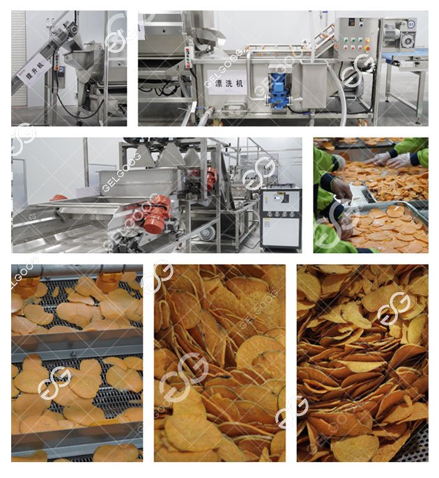 Lini produksi penggorengan vakum keripik ubi jalar terutama terdiri dari: ubi jalar - pembersihan - pengupasan - blansing - pengeringan udara - pengirisan - penggorengan vakum - pengemasan.